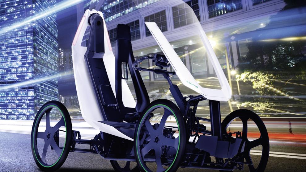 Formalmente, por su estructura con techo, puede recordarnos al vehículo eléctrico Renault Twizy o a la moto BMW C1, pero mecánicamente nada tiene que ver con ellos. La propuesta de Schaeffler viene a ser una bicicleta de cuatro ruedas con carrocería cubierta para proteger a sus ocupantes.