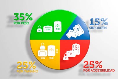 2. Los bultos más pesados primero en la zona más adelantada, y las maletas más grandes y rígidas en el fondo, colocando el resto del equipaje encima.